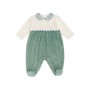 TUTINA VERDE E BIANCA CON COLLETTO FIORATO IN CINIGLIA